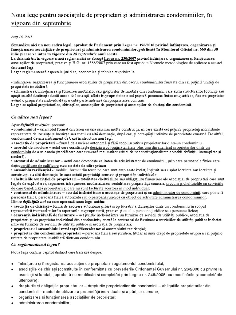 Salvarsalvar legea asociatiei de locatari 230 2007 para ler mais tarde. Modificarile importante asupra legii asociatiilor de proprietari. Noua lege a asociaţiilor de proprietari cu obligaţii suplimentare pentru cei care locuiesc la bloc intră în vigoare de vineri.